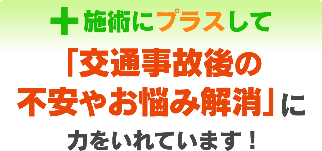 - 交通事故後治療の経験が豊富で身体的・精神的苦痛を把握